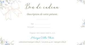 Vous cherchez une idée de cadeau originale et pleine de sens ? Offrez une carte cadeau pour une séance photo avec Margot Villa, photographe professionnelle basée dans les Vosges. Que ce soit pour un anniversaire, une naissance, un mariage ou simplement pour faire plaisir, cette attention ravira vos proches en leur offrant des souvenirs inoubliables.